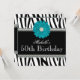 Ett stilfullt svartvitt zebra mönstrad med en grafisk utskrivaven blomma för daisy för krickablåttdiamant presenteras på denna chic 50th födelsedagsfest inbjudan. Skräddarsy lätt med ditt party specificerar! Moderna, kalla och skraj födelsedagsfest inbjudan.