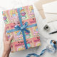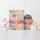 Denna gulliga födelsedag för princessen som födelsedagsfest slår in papper, presenterar en persika och en gröntlutningbakgrund, stylized textgrattis på födelsedagen, en lite blond princess i en nätt rosaklänning framme av en rosa ram med gröna ballonger och muffins för en bakgrund. Perfekt för inpackning av födelsedagdaggåvor. Välj ditt massmedia och format av inpackning av papper.