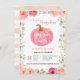 Födelsedag för rosa blom- guld- pumpa för inbjudningar