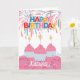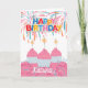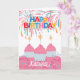 En trio rosa muffinsar, gnistljus och färgstarka fyrverkerier finns på omslaget till detta hälsningskort i Grattis på födelsedagen för en syster. Lägg till din systers namn i omslaget och anpassa meddelandet som du vill. Art, bild och versell copyright © Shoaff Ballanger Studios, 2022.