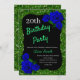 Elegant grönt glitter och djupt blått ro födelsedagsfest inbjudan för kvinnor i alla åldrar. Åldern kan ändras för vilken ålder som helst. Text kan ändras till vad som helst för att passa din händelse. Typsnitt, typsnitt färg och text är helt anpassade! Papper form och typ kan anpassas efter din budget och smak!