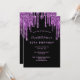 Födelsedag glitter droppar svart lila modern chic inbjudningar