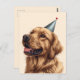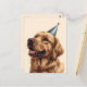 Söt tecknad illustration av Golden Retriever hund som bär en födelsedags hatt. Perfekt för djurälskare eller hundföräldrar.