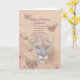 Stödjagröntögonen av en puma stirrar ut ur en bakgrund av den dämpade persikan och rosor. Fjärilar och blommor dekorerar kanten av avbilda. Med de huvudsakliga delarna av avbilda som bleknas in i bakgrunden, är det total- utseendemässigt, mjukt och drömlikt som är i kontrast till fiercenessen av den stora katten. Detta tema av styrka och mildheten bärs över in i känslan av den inre versen, som är en textmall, och ändras lätt eller tas bort. Bekläda av denna födelsedaghälsning för en gudfader markeras av ett bibelcitationstecken från Psalm100:5. Fjärilarna och bakgrunden är ändrade versioner från Pats floror, och Fauna av Digital skrotar designer.