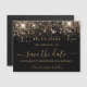Ett giftigt och trendig Spara datummagnetkortet för en födelsedagsfest. En svart bakgrund dekorerad med faux guld glitter, gnistor. Anpassa och lägg till ett datum och namn. Golden färgad brev. Texten: Spara datumet skrivs med ett stort trendig-handskript i stil med dekortecken.