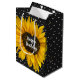 Gult solros med mitten på polka punktbakgrund för en födelsedag eller en annan händelse. Bakgrunden kan ändras. Text kan redigeras eller tas bort.