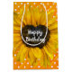 Gult solros med mitten på polka punktbakgrund för en födelsedag eller en annan händelse. Text kan redigeras eller tas bort.