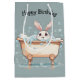 Cute white kanin i badkar med bubblor på födelsedagen. Text kan redigeras.