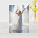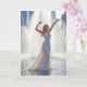 En kvinna dansar på ett snyggt sätt i en elegant vit klänning, som klämmer med sin arm som höjts framför en stad fontän, omgiven av ett slag i vatten. Inre text kan ändras.