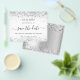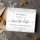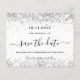 Observera att det här Spara datumet är pappert och mycket tunt. Kuvert ingår inte. Om du vill ha ett tjockare Spara datumkortet (samma design) kan du besöka vår butik. En elegant Spara datum för en 40:e (eller någon annan ålder) födelsedagsfest. På framsidan: En vit snyggt som dekoreras med faux glitter-gnistor. Anpassa och lägg till datum och namn/ålder 40. Texten: Spara datumet skrivs med ett stort trendig-handskript i stil. Baksida: Faux silver tittar bakgrund och Faux silver sparkles.
