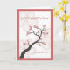 Ett vackert födelsedagskort för din moster visar en kinesisk blommar träd med rosa blomblad i en ram av färg som samordnar.