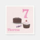 Utformningen har en osäker bakgrund till rosan av kakor och godis. Ljusstark rosa visningar födelsedagstjuvans ålder och namn.