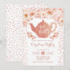 Tea Party Födelsedagsfest inbjudan. Elegantens utformning i Faux glitter ro guld med blommigt accent. Inbjudan-kort med glitter tekruka och skript med konetti. rosa, vit. Perfekt för en snyggt vid firande. Kan anpassas till vilken ålder som helst.