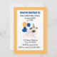 Hund med ballonger och hatt. Du kan ändra teckensnitt genom att klicka på knappen "Redigera design".