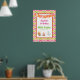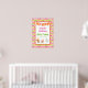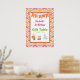 En födelsedagsfest i personligen som bord poster. Designad med en söt illustration av en leende lejon med en party hatt, ett fuzzy-får med födelsedagsballonger och en födelsedagskalas med 3 ljus.. Ställ in på mönster för rosa, grönt och gult. Perfekt för 3-årsjubileum men även bra för födelsedagar i alla åldrar.