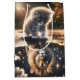 Cute Kitten tittar in i en regnpuddle och ser en lejon reflektion med stjärnor på födelsedagen. Text kan ändras.