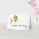 Vattenfärgning av en fågel på gren med vintage handskriven Grattis på födelsedagen.