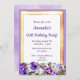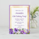 Ett inbjudningskort från elegant födelsedagsfest för en 60-årsdag. Mallar för din information. En ultraviolett, lavender färgad ram och två tunna faux guld ramar. Elegant vit bakgrund, lila brev. Med söt lila, violett och vit blomma. Bakåt: violett bakgrund.