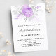 För en 40-årsfest (eller vilken ålder som helst). En stilren vit bakgrund. Dekorerad med lila och vita blommor, rosor och silvergrönt. Anpassa med namn och festdetaljer.