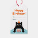 Födelsedag liten katt med rosa kaka och ballonger presentetikett
