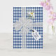 Vit skjul med vit daisy och märkre på vit och marin blå gingham mönster. All text kan ändras.