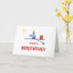 Kortet visar en enda rower som bär en party-hatt och som bär en gåva i båten. Det finns tre gulter i bakgrunden och hälsning i rött på framsidan är "GRATTIS PÅ FÖDELSEDAGEN". Inuti finns ytterligare ett startskifte. Meddelandet är redot att anpassa sig och lyder: "Önskar en extraOARdinary-födelsedag. Behålla på rotning!"