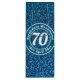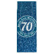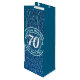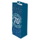Minneshögtid med en påse från Gift vin flaska, som dekoreras med mottagarens namn, deras ålder och födelsedatum. 70-årsdagen. Födelsedag vin flaska väska.