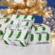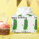 Grönt på vit bakgrund med rosa glasögon och grattis på födelsedagen på vitt.