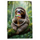 En lutning genomborras på ett gren som är täckt av flera arter och som har en regnbågskronkon i en djungelinställning. Text kan ändras.
