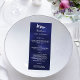 Menykort för födelsedagsfest. Anpassa och lägg till namn, ålder, datum och meny. En blå bakgrund. Den blå färg är ojämn. Vit färgad brev.