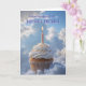 Till minne av en älskad sen mor på hennes födelsedag. En söt liten kaka sitter i molnen med ett ljus och ord av komfort och kärlek.
