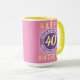 40-årsdagen mugg. Ljusa färger och djärv design. Numrerad födelsedag mugg. Utformningen upprepas på båda sidor. 40 år gammal.
