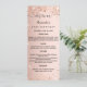 Ett elegant, glamoröst menykort. Anpassa och lägg till ditt namn, datum och menyn. Bakgrund i ro guld, dekorerad med gnistor från ro guld faux glitter.