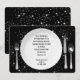 Vit middagsplatta med silvergods på tvillingstjärnor och svart för alla åldersdagar på party inbjudan. Bakgrunden till färg kan ändras.