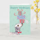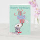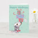 Grattis på födelsedagen hälsning med den här söta designen med en söt Bedlington Terrier som balanserar en hög med födelsedag presenter på näsan. Det går lätt att ändra texten. Klicka bara på knappen Anpassa.