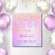 För en giftig och glamorös 21:a (eller någon ålder) födelsedagsfest med flickorna. En bakgrund för regnbåge med elegant faux glitter-droppar, färgdroppar i lila, rosa och ro guld. Texten: namn är skrivet på lila med ett handskript i trendig stil. Anpassa och lägg till namn, 21 år och ett datum. Födelsedatum eller datum för party.
