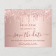 Observera att detta datum är pappert och mycket tunt. Kuvert ingår inte. Om du vill ha ett tjockare kort (samma design) kan du besöka vår butik. Ett giftigt och trendig Spara datumkortet för en 40:e (eller någon annan ålder) födelsedagsfest. En feminin rosa, ro guld faux metallisk tittar bakgrund som dekoreras med faux ro glitter drops. Mallar för ett datum och namn/ålder 40. Mörk ro guld färgad brev. Texten: Spara datumet skrivs med ett stort trendig-handskript i stil.