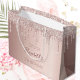 En presentväska för en gigantisk och glamorös 21:a (eller någon ålder) födelsedag. En ro guld-bakgrund, droppar, färgdroppstift. Texten: namn är skrivet i mörk ro guld med ett modernt handskript i stil. Tempera för ett datum och ålder 21 år.
