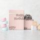 Elegant, klassisk, glamorös och feminin stil party som är papper. En gigantisk rosa, ro guld-bakgrund som dekoreras med ro guld droppar. Ballon stil typsnitt och texten: Grattis på födelsedagen.