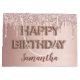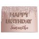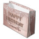 En presentpåse för en giftig och glamorös födelsedagsfest. Ett faux ro guld-bakgrund med en elegant faux ro guld glitter drops, målardroppstift. Texten: namn är skrivet i mörk ro guld med ett modernt handskript i stil. Texten: Grattis på födelsedagen är skriven med en stil-ballong.