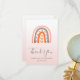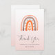 Ett tack för en 21:a (eller någon annan) födelsedag. En ro guld och vit övertoningsbakgrund. Dekorerad med en modern abstrakt, minimalistiskt målad regnbåge med hjärtan i grått och ro guld och orange. På framsidan av stora grått färgad-handskrivna skript och text: Tack, text, rubrik och datum. Tillbaka: Anpassa och lägg till tackkort och namn.