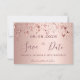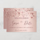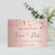 Ett giftigt och trendig Spara datumkortet för en 40:e (eller någon annan ålder) födelsedagsfest. En rosa, övertoningsbakgrund för ro guld dekorerad med stjärnor. Anpassa och lägg till datum och namn/ålder. Texten: Spara datumet skrivs med ett stort trendig-handskript i stil.