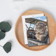 Födelsedagskort med ett foto av en katt som bär en läderjacka, skyddsbrillor och ett flygplan i bakgrunden. Inuti finns födelsedagsönskningar som säger "Åldrad Purr-fektion! Glad födelsedag! Med kärlek, Katie". Perfekt för en pilot eller flygentusiast. Anpassa det med ditt namn, adress och dina egna födelsedagsönskningar för att göra det extra speciellt.