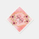 Ett trendig papper napkin för en 70:e födelsedagsfest. Med ett faux guld hexagon geometriskt utformat ram. Dahlia-blommor i rosa, kräm och korall. Att leva korall med polka dots som bakgrund. Mallar för namn, 70 år och ett datum. Födelsedatum eller födelsedatum i party. Burgundy och korall färgad brev.