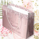 En presentväska för en gigantisk och glamorös 21:a (eller någon ålder) födelsedag. En dammig rosa faux metallisk tittar bakgrund med faux glitter drops, målardropputseende. Anpassa och lägg till ett datum, namn och 21 år. Texten: namn är skrivet i mörk ro guld med ett modernt handskript i stil.