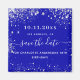 Ett trendigets royal blå bakgrund. Dekorerad med faux-damm från silver glitter. Anpassa och lägg till datum och namn/ålder 18 (eller någon ålder). Texten: Spara datumet skrivs med ett stort trendig-handskript i stil.