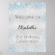 Välkomstkort för en giftig och glamorös födelsedagsfest på 21:a (eller i vilken ålder som helst). En faux silver-bakgrund med blått faux glitter damm. Anpassa och lägg till namn och ålder. Black brev.