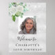 Födelsedag silver, fotot glitter blommigt välkomna poster