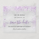 Observera att detta datum är pappert och mycket tunt. Kuvert ingår inte. För tjockare kort (samma design), besök vår butik. Ett giftigt och trendig Spara datum för en 40:e (eller någon annan ålder) födelsedagsfest. En modern faux-metallisk tittar i silver som dekoreras med lila faux glitter stoft. Anpassa och lägg till datum och namn/ålder 40. Black and lila färgad brev. Texten: Spara datumet skrivs med ett stort trendig-handskript i stil.