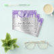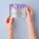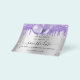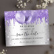 En falsk silverfärgad bakgrund dekorerad med lila, lavendel färgad falsk glitter och ballonger. Anpassa och lägg till ett datum och namn/ålder. Texten: Spara datum är skriven med en stor trendig handskriven stil.